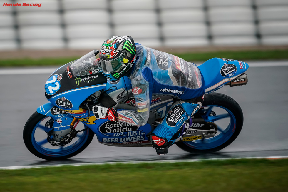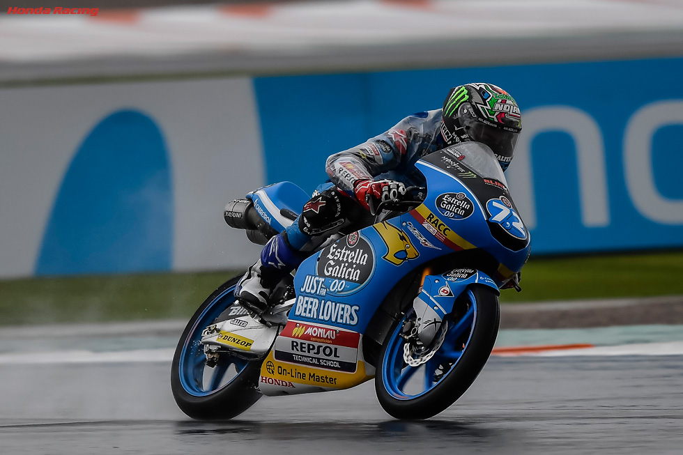 Moto3クラスは、ホームグランプリに気合のアロンソ・ロペス(Estrella Galicia 0,0 Marc VDS)がトップタイムマークしました。デビューシーズンの今年は、初めて経験するサーキットが多く、勉強のシーズンとなりましたが、走り慣れたバレンシアで、初のトップタイムをマークしました。