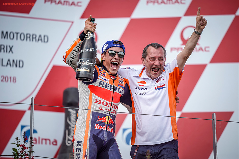 「ポジティブなことはマルクがドイツGPで9連勝を達成したこと。そして、チャンピオンシップで重要な25ポイントを、再び、獲得したことです。この結果、マルクが総合2位の選手にリードを広げ、46ポイント差としました。ネガティブポイントは、ダニが苦戦したこと。そして、LCR Hondaの2人がともにリタイアしたことです」