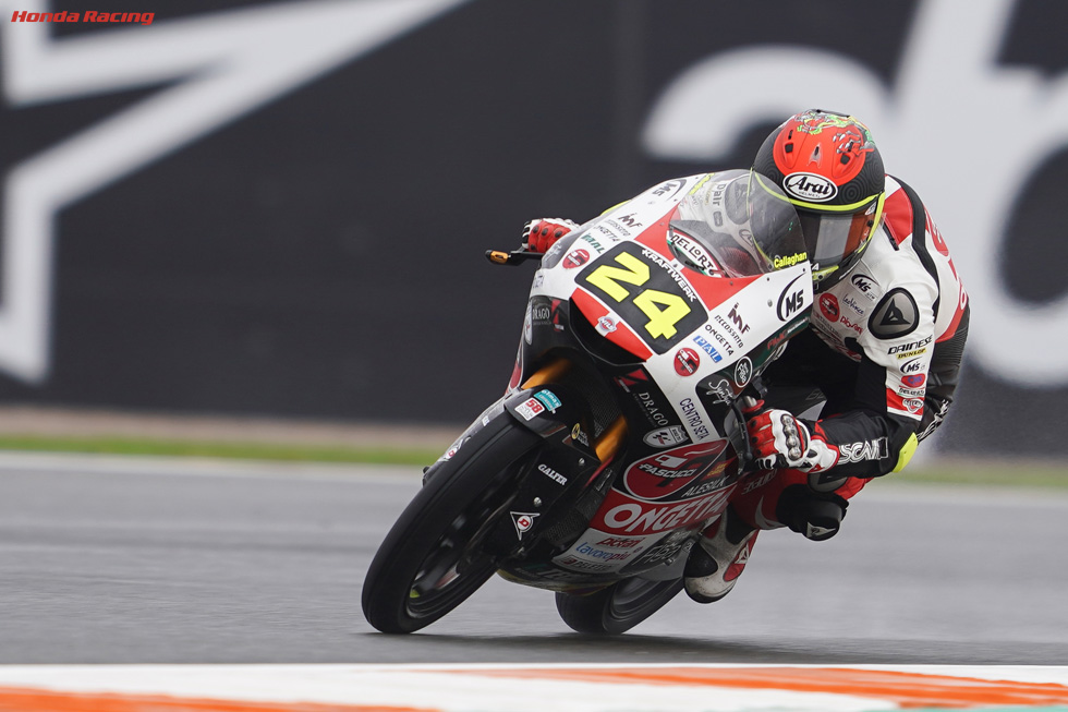 Moto3クラスは、3クラスの中でもっとも難しいコンディションの中で行われました。FP1はウエットコンディションでしたが、FP2はウエットで始まり、セッション中盤からライン上が乾いていく微妙な路面状況でした。その中でHonda勢は、セルジオ・ガルシア(Estrella Galicia 0,0)が2番手と好調なスタートを切りました。