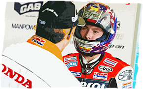 | 今シーズンでよかったことは、MotoGPのルーキー・オブ・ザ・イヤーを獲得したこと。1年間ルーキーとして与えられた仕事を着実にこなせたと思うし、この賞はその証として大変名誉に思っている。もちろんHonda、HRC、そしてチームの協力なしにはもらうことはできないものだよ、みんなに感謝している。それから、第15戦・フィリップアイランドの3位表彰台は、忘れることのできない特別な瞬間だった。実はその日の朝、僕は父親と賭けをしてたんだ。僕が表彰台に立ったら、彼はやせるためのダイエットを続けなければいけない。表彰台がだめだったら、僕は彼の店のガレージの最前列に並んでいる車をすべて洗うというもの。ありがたいことに僕は3位でフィニッシュし、表彰台をゲットした。いい結果を出したい思いもあったけど、車を洗うのは絶対いやだって、心の底から思ってた。 反対に今シーズンで悪かったことは鈴鹿の8時間耐久ロードレースだ。あの悔いの残るレースさえなければ、ほぼ100%満足のいくシーズンだったと言えるね。 来シーズンの僕の目標は非常に基本的なことだよ、予選でもっと速く走れるようになりたいということさ。振り返ってみると、予選での不出来がレース結果に大きく影響したのは事実。MotoGPクラスでは、3列目や4列目からのスタートで表彰台を狙うことは、よっぽど運が良くない限り不可能に近い。前方に何も遮られるものがなくて、トップに立ってレースを自分自身がリードするという場面を、短い間だったけどオーストラリアGPで初めて経験したけど、驚くほど素晴らしい感覚だった。来年はもっともっと何度もこんなふうにレースをしたいんだ。 最終戦、バレンシアGPでのクラッシュは、予期せぬ煩わしい問題をもたらした。転倒した時、すぐに起き上がってレースに戻らなきゃいけないと思って、右手をハンドルから離さなかったんだ。ところがその時にどうにかなって、右手の親指の筋を伸ばしてしまったらしい。それがそのあと、レースが終わってチームのみんなと夕食をとっている頃にだんだん痛み出してきて、アメリカに戻ってからも気になってはいたんだけど、でも、まあちょっとくじいた程度と思ってた。ところが、予定されていたテストが近づくにつれて痛みが増し、バイクや自転車に乗ろうとするたびに激痛が走るようになったんだ。レントゲンを撮ったら小さな剥離が見つかって、ケニー・ロバーツやエディー・ローソン、ミック・ドゥーハンの治療にもあたったドクター・ティング(Dr. Ting)に診てもらい、つい先週簡単な手術を受けた。数週間のうちにはバイクに乗れるようになるだろうとのことだったが、そんなわけでバレンシアのテストとツインリンクもてぎのEnjoy Hondaには残念ながら参加することができなかったんだ。 これからは、この指のけがを治しながらだけど、来シーズンに向けて必要なトレーニングをしていくことになるだろう。その準備はできているよ。いよいよ2004年だ。期待していてね。」 (2003年12月1日ケンタッキーの自宅にて) ![]() |