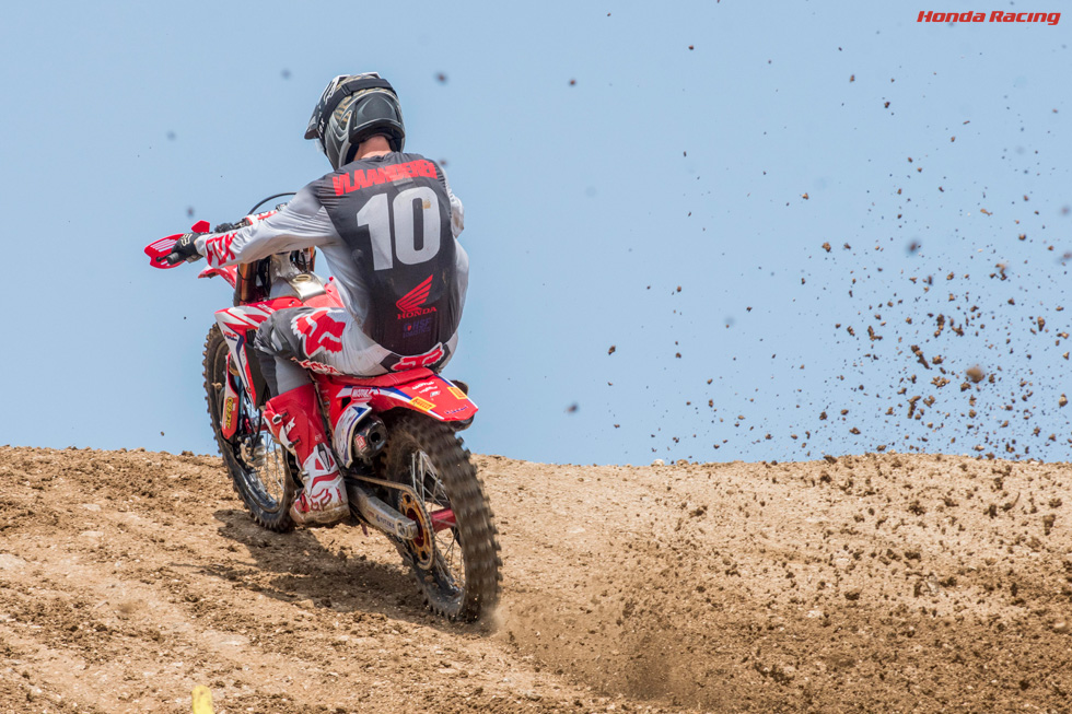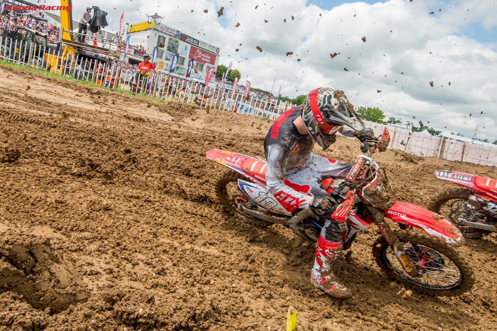 MX2クラスでは、ドイツGP、イギリスGPと続けて表彰台をゲットしてきたカルバン・ファランデレン(Team HRC)が、CRF250RWに同等以上の好成績をもたらすべく、フランスGPに臨んでいました。
