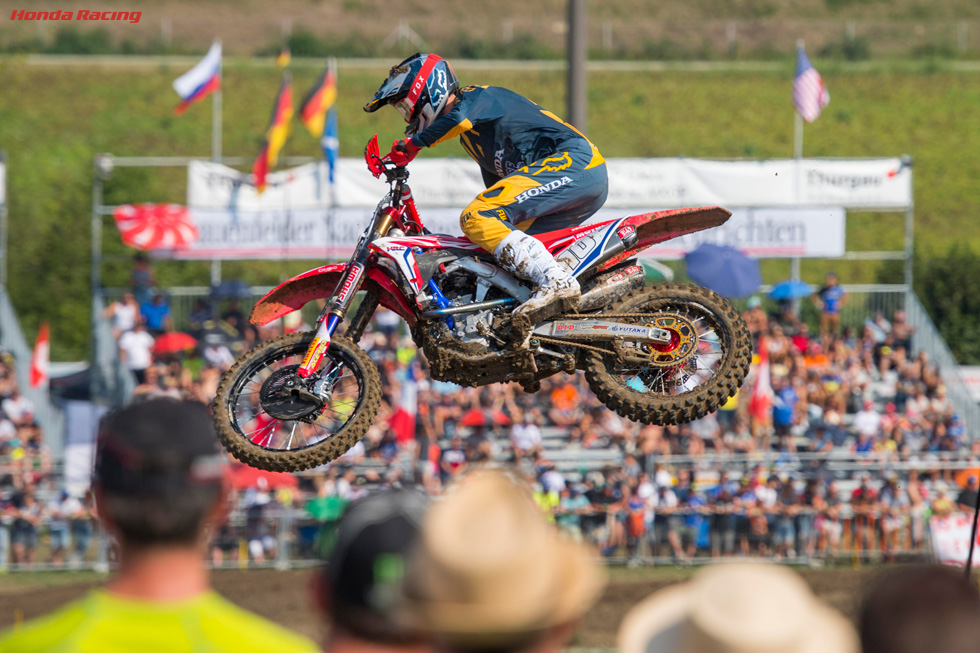 レース1ではCRF250RWを駆るカルバン・ファランデレンが、スタート15番手から3周目には7番手まで躍進していました。ところが4周目にマシントラブルが発生したためにリタイアとなりました。