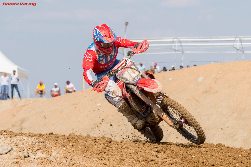 MX2クラスのカルバン・ファランデレン(Team HRC)は、1週間前のブルガリアGPで大クラッシュを喫していたので、フィジカルコンディションが心配されましたが、CRF250RWをポディウムに押し上げる担い手としてトルコGP出場を果たしました。