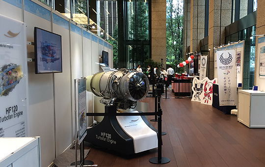 「COUNTDOWN SHOWCASE」にて、小型ターボファンエンジンHF120を展示