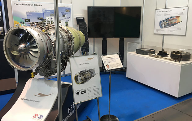 関西ものづくりワールドは、製造業の短期開発・生産性向上・品質向上・VA/VE・コストダウンに寄与することを目的に開催される西日本最大の「ものづくり専門展」で、2019年は1,350社が出展し、40,071名が来場されました※。Hondaは、HondaJetに搭載されている小型ターボファンエンジンHF120開発の講演、及びエンジンモックアップの展示を行いました。