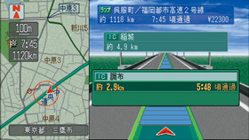 ■高速ガイド サービスエリアやインターチェンジまでの距離、通行料金など、高速道路を走行中に必要な情報を見やすく表示。 |