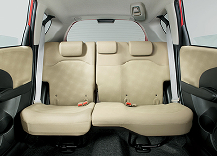 後席も膝まわりや足元、頭上までゆとりたっぷりで、家族や仲間と一緒に乗っても快適。また、手触りのよい上質なシート素材で、やさしい座り心地です。