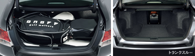 4つ※1のゴルフバッグが入る510L※2という大容量を確保し、リアセンターアームレスト部が開くトランクスルーやリアシートのフォールダウン機構も採用。質感も高く仕上げ、ロングツーリングにも頼もしい広さと機能が魅力のラゲッジスペースです。