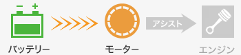 エンジンの高効率運転をメインに、状況に応じてモーターがアシスト。