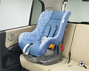 リア左右席に設けたISO FIX対応のチャイルドシート固定専用バーにより、チャイルドシートを簡単・確実に取り付けることが可能です。さらにテザーアンカー(リアシート後方天井部)とチャイルドシート上部をテザーベルトで固定することによって、万一の衝突時、チャイルドシートの前方移動を効果的に抑制します。 |