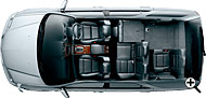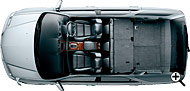 | 大人7人がゆったりと過ごせる快適な居住空間を実現。その広大な空間は、6:4分割可倒式の2列目シートと5:5分割可倒式の3列目シートによる多彩なシートアレンジによって、さらに大きく利用することができます。目的に応じて、荷物に応じて、フレキシブルに対応します。 |