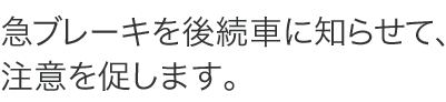 走行中に急ブレーキと判断すると、ブレーキランプの点灯に加えて、ハザードランプが自動で高速点滅し、後ろのクルマに注意を促す「エマージェンシーストップシグナル」を全タイプに標準装備。
