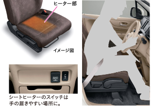 雨の日や早朝などの冷えた車内でも、座面から身体を暖めます。