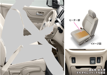 雨の日や早朝などの冷えた車内でも、座面から冷えた身体を暖めます。