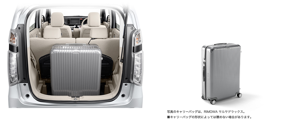 後席はスライドできる機構付。でも、普段の買物を積むのに、後席を前に動かさなくても、一番後ろにしたままで十分に「使える」荷室の広さを実現。