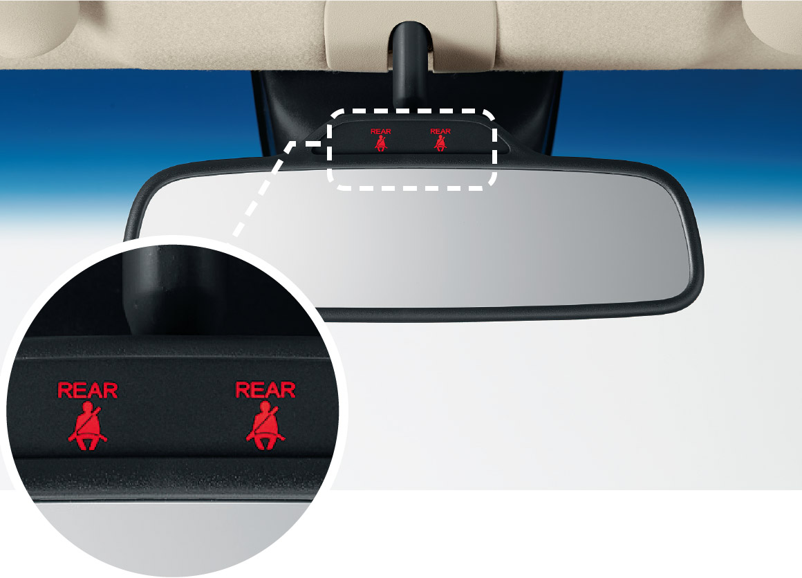 後席からも見やすいルームミラー上部のランプでお知らせし、シートベルトの着用を促します。