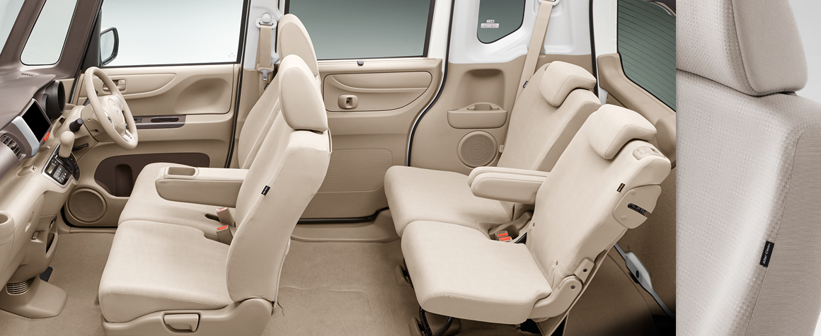 ターボ車には、触り心地が柔らかなレザー調を組み合わせたシートを。