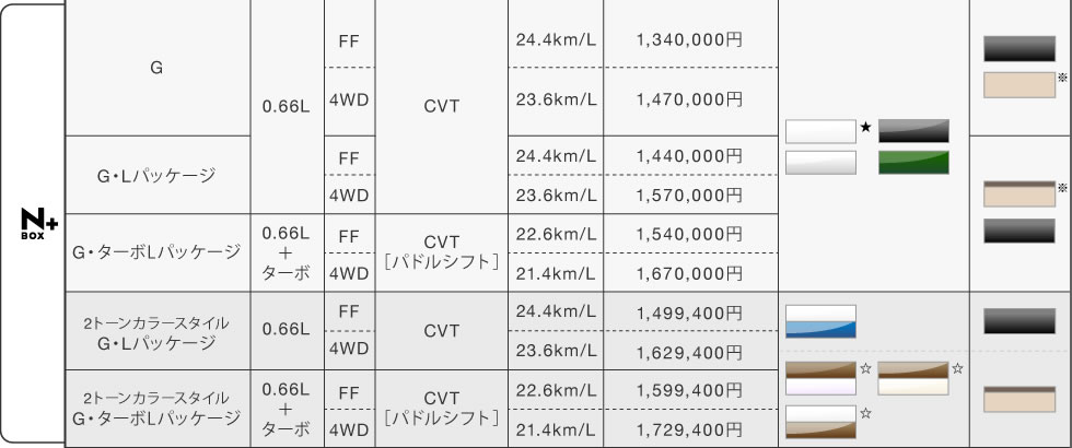 ★印のボディカラーは32,400円(消費税抜き 30,000円)高となり、表示価格には含まれておりません。