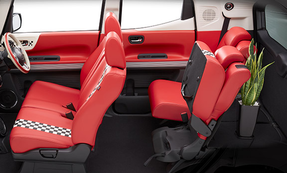 後席が足元に収まり、ラゲッジと一体に。荷室床面が平らになり、安定感もバツグン。左右片側だけのアレンジもできます。