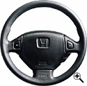 メーカーオプションのエアバッグ装着車には、SRSエアバッグシステム組み込み本革巻ステアリングホイール〈本革部分のみMOMO社製〉が