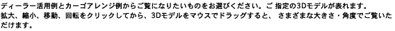 | ※これは3DCGによるイメージ画像です。 シートカラーはコンピューター 画面の特性上、実物と異なって見える場合がございます。 詳細は展示車などでご確認下さい。 正常に表示されない方、または下記の動作環境に対応していない方は情報ページをご覧ください。 |