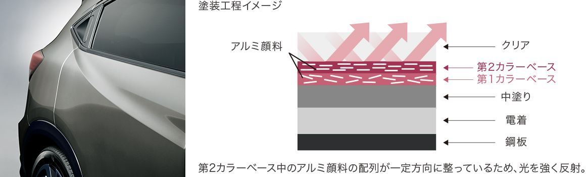 ソリッドとメタリック、2つのカラーを重ねた特別な塗装構造。