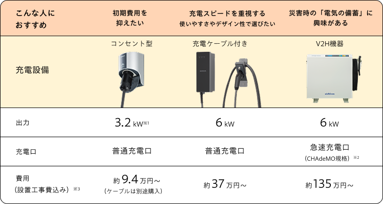 僕はV2H(ブイツーエイチ)機器っていうのを選んだんだけど、充電器にもいくつかタイプがあって、使い方に合わせて選べるんだよ。