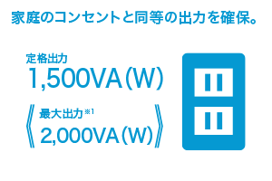 ※1 定格出力1,500VA(W)、最大出力2,000VA(W)