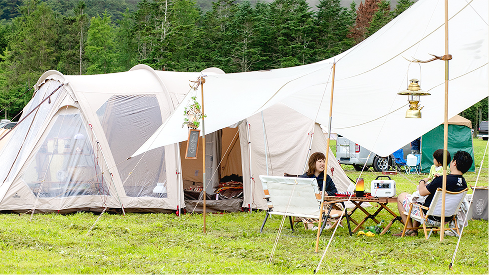 ご夫婦でオリジナルデザインのキャンプ道具を作り、アウトドを親しむ菊池さん。こだわりのキャンプサイトにはお子様と一緒にキャンプを快適に過ごす工夫が満載。