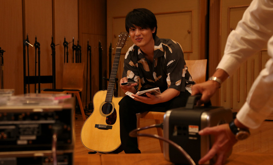 僕とHonda蓄電機の出会いは2019年7月。野外のアコースティックライブで演奏したときのことだ。そのときのライブは、すべての電源を蓄電機、この小さなポータブル電源でまかなってサウンドを鳴らすという一風変わったライブだった。普通、野外ライブと言えば大きな発電機で機材を動かす。発電機の大きな音に負けないような大きな音で演奏するのが野外ライブの定番だ。でも、そのときのアコースティックライブは、鳥のさえずりと吹き抜ける風の音が聞こえてくるほど自然そのまま。ギターと僕の声だけが草原に響き渡る。しかも、そのサウンドはとてもクリアなもので、シンガーとしてはちょっと印象的なライブ体験だった。