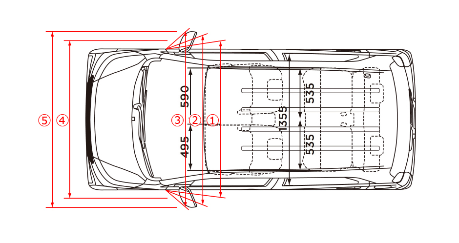 | ① | 両側フロントドアを 開いた時の車幅 |