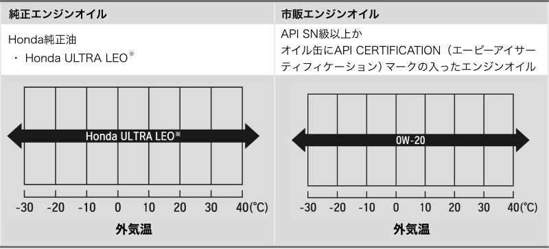 ◯エンジンオイルの種類 ※最も省燃費性に優れたHonda純正オイルです。