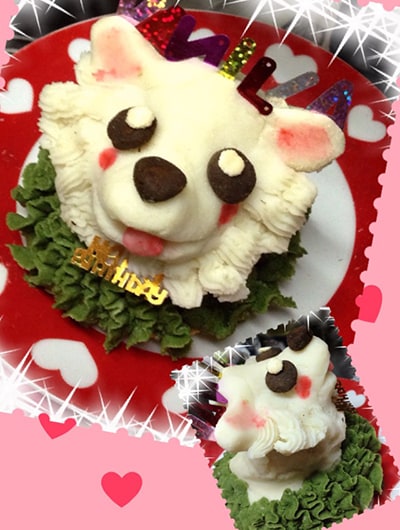 また、記念日やお祝い用には「ワンちゃん用ケーキ」も予約できますよ。わんこの健康にいいものを原料にしているのはもちろんのこと、ケーキの形や色を愛犬に似せて、そっくりに作ってもらうこともできます。アレルギーや好き嫌いに合わせてオーダーできるので、愛犬へのプレゼントにいかがですか?
