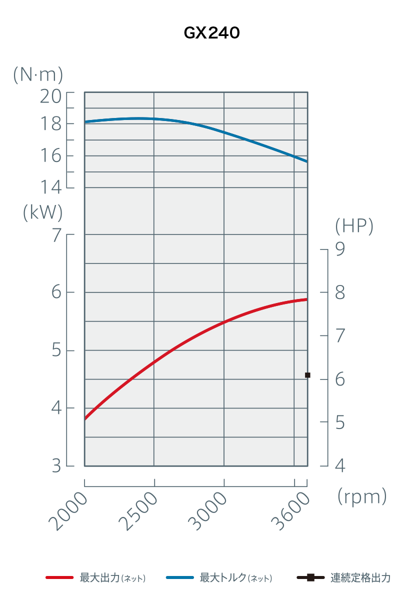 | 最大出力(ネット) | 5.9 kW (7.9 HP)@3600 rpm |