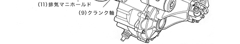 図にその一例として、排気マニホールド(11)、吸気マニホールド(12)が示されています。 |