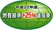 平成22年度燃費基準を25%以上上回る優れた燃費性能を達成した車両に与えられます。 | |