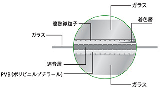 ![]() ■遮音+IRカットガラス構造説明拡大図 | |