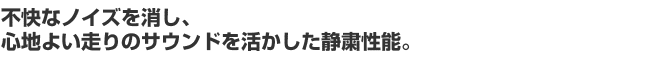 | 振動・騒音を発生源で低減したうえで、ボディやシャシー各部の剛性を高めるなど、エンジンや路面から室内に伝わる振動を効果的に抑制。さらに、室内に侵入するノイズの遮音・吸音処理を適所に施すとともに、ボディパネルの固有周波数をチューニングすることでノイズをキャビン内で打ち消す技術も取り入れました。その結果、クルマの加速と同調した心地よいエンジン音と、不快なノイズのない優れた静粛性を両立しています。 | |