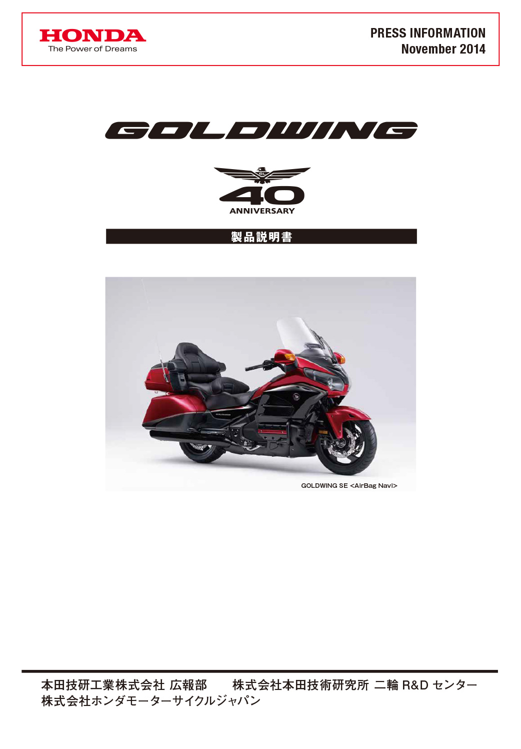 (大型二輪クルーザー「ゴールドウイング」の発売40周年を記念して特別仕様の「ゴールドウイング SE」をタイプ設定し発売〜シリーズ全車に記念エンブレムを採用〜)