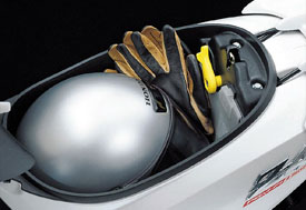 | ※当社測定値。メットイン・スペースには、一部の特殊な形状のヘルメットは入らない場合があります。また、熱の影響を受けやすいもの、こわれやすいもの、貴重品は入れないでください。 ●写真の小物類は撮影のために用意したものです。 |