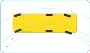 | トレーラースタイルの〈アクティ・コンポ〉では、ハンドルの切れ角を拡大した電動4WSを搭載。3軸目を操舵して内輪差を少なくすることで、安定したコーナーワークを可能にしています。 | ![]() |