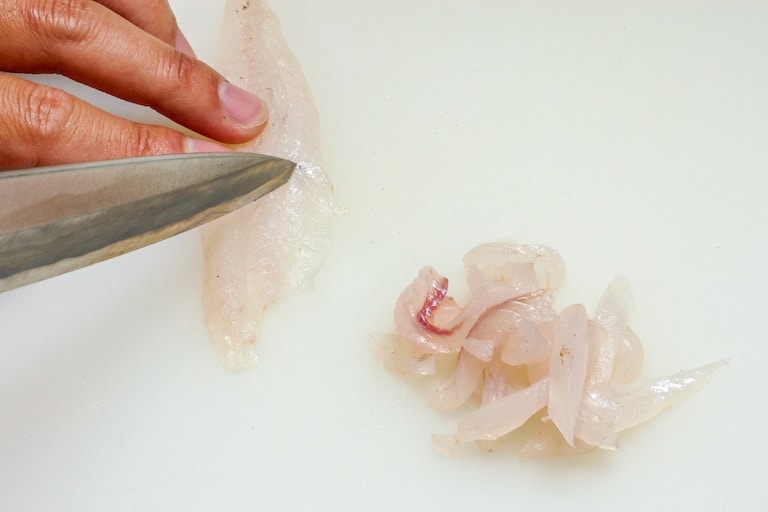 上品なシロギスの身をひと手間加えた刺し身で