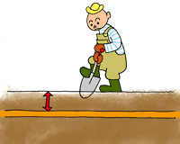 もし、20cmに足りない場合は、その下にあるかたい土の層「 耕盤」を掘り起こして耕します。深く耕す場合は、 耕うん機を利用すると便利です。 |