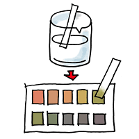 - 上澄み液にpH試験紙を浸し、色の変化をみる。