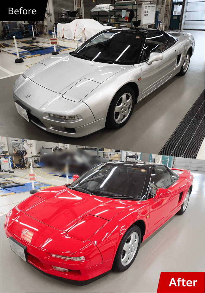 窓枠のないサッシュレスドアを採用していることもあり、組み付け後の建付け調整を慎重に行うことで新車時のフィーリングが蘇ります。また、ボンネットやエンジンフードなどもドアまわり同様、ゴム類などを交換し、調整。最後にシャワーテストを行って漏れがないかを確認します。