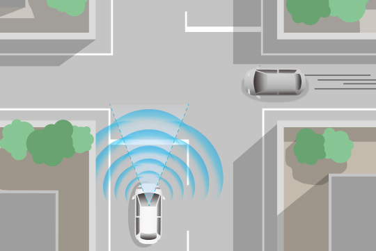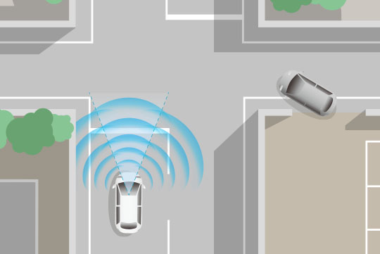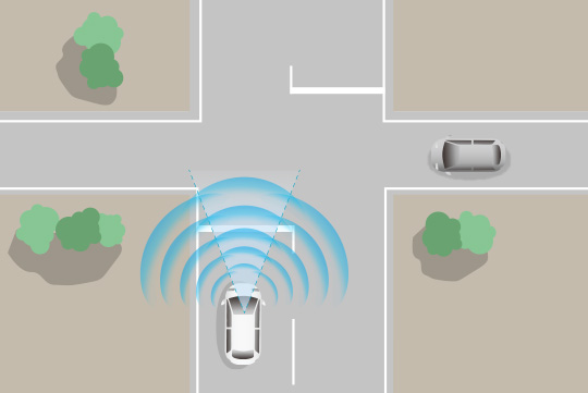 一般道の交差点などでの低速走行時や停車状態から発進する際に、左右から接近する車両を検知してディスプレーに表示。接触する危険性がある場合は、音とメーター表示で警告し、衝突回避の運転操作を促します。