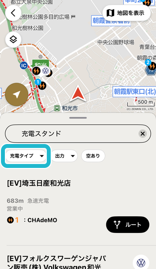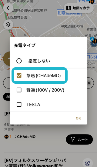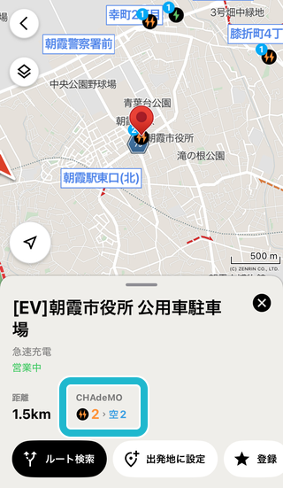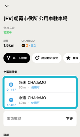 任意の充電スタンドを選択し「追加する」をタップすると、充電スタンドを経由地に設定します。
