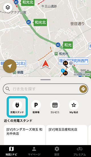 EVカーナビ by NAVITIMEアプリを起動し、マイページをタップ。