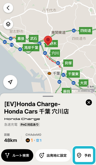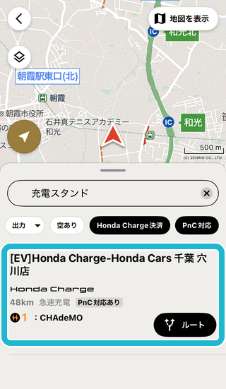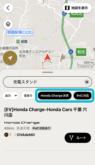 Honda Chargeで決済可能な充電スタンドを絞り込みます。・PnC対応: