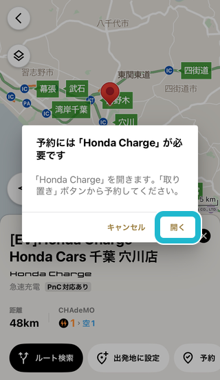 「Honda Charge」アプリ内より予約してください。※アプリ未インストールの場合はアプリストアに遷移します。 ※Honda Charge 詳細はこちら:Honda Charge|Honda公式サイト